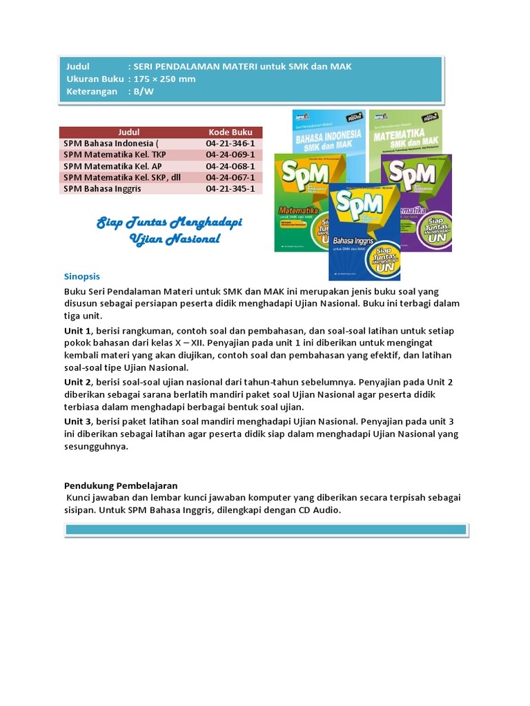 Informasi mengenai kunci jawaban spm bahasa indonesia paket 1 smk dapat anda pilih dari daftar bacaan yang ada di bawah ini. Home kategori pelajaran spm bahasa inggris smk mak 04 21 345 1 spm bahasa inggris smk mak 04 21 345 1 detail buku. Inilah adalah post an aku yang pertama loh aku baru belajar bikin blog.