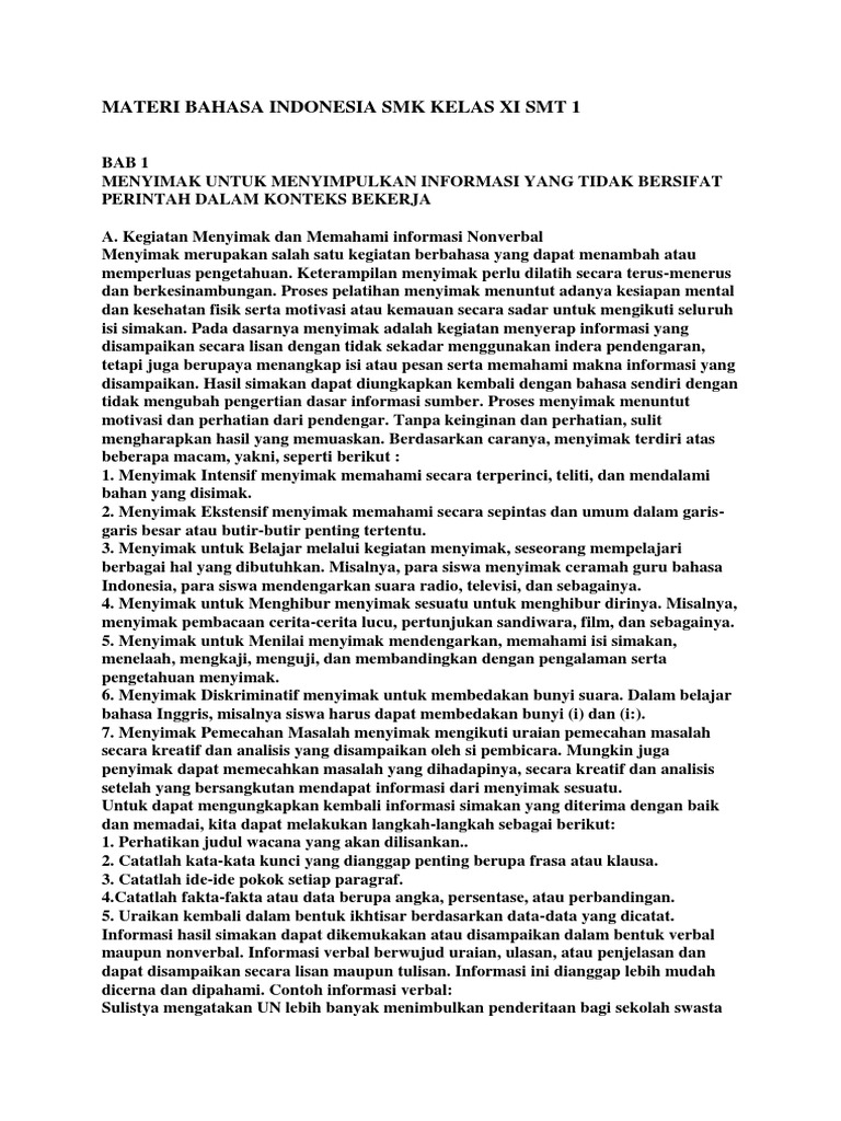 Materi Bahasa Indonesia Smk Kelas Xi Smt 1