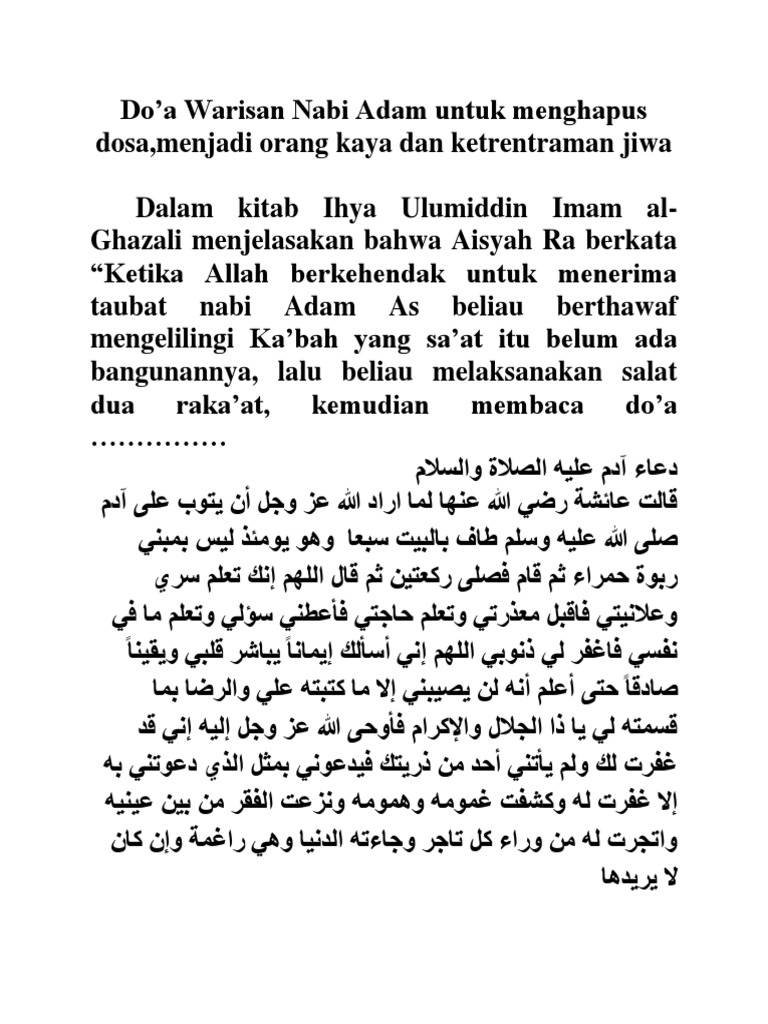 Doa Nabi Adam Lengkap Bahasa Arab Latin Dan Arti