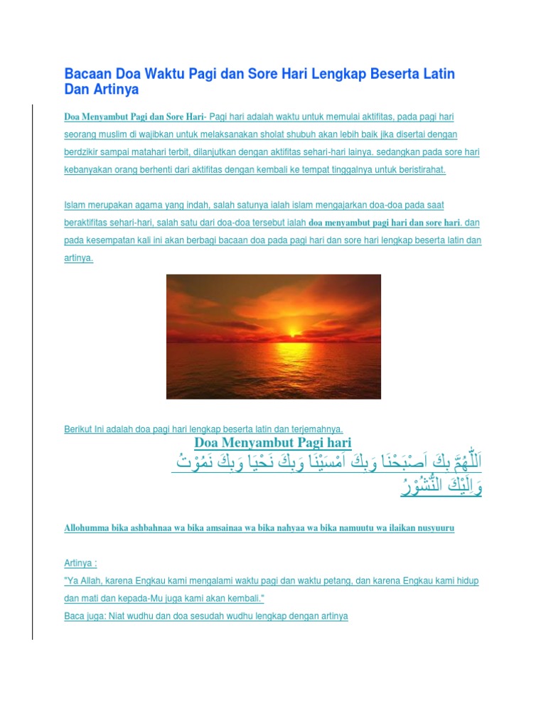 Bacaan Doa Waktu Pagi Dan Sore Hari Lengkap Beserta