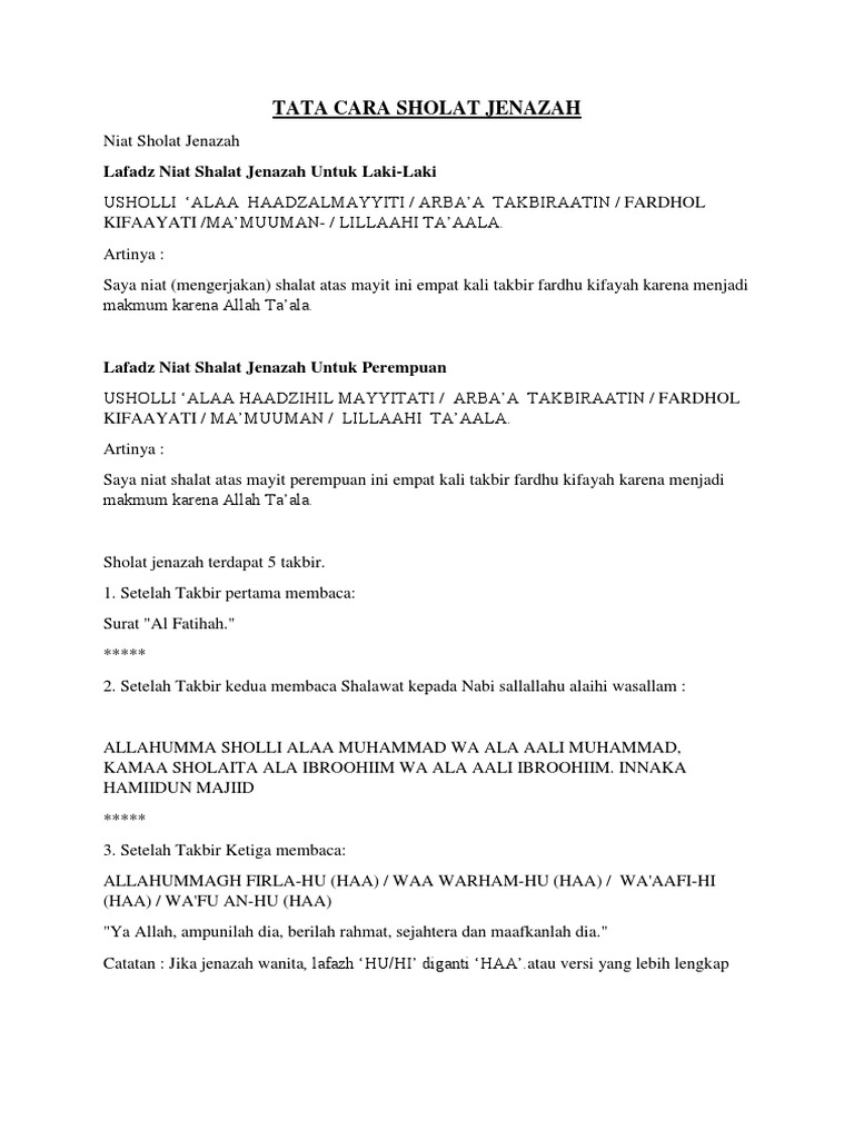 Tata Cara Sholat Jenazah Laki Laki Jenazah Perempuan Dan