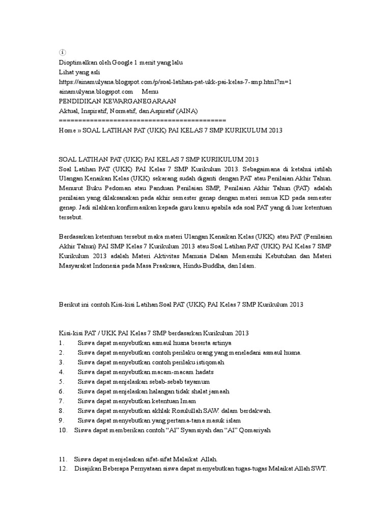 Kumpulan Soal Pai Smp Kelas 7 Semester 1 Didno76 Com