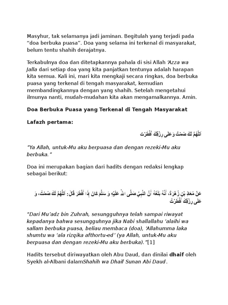 Doa Berbuka Puasa Yang Shahih Swamedium