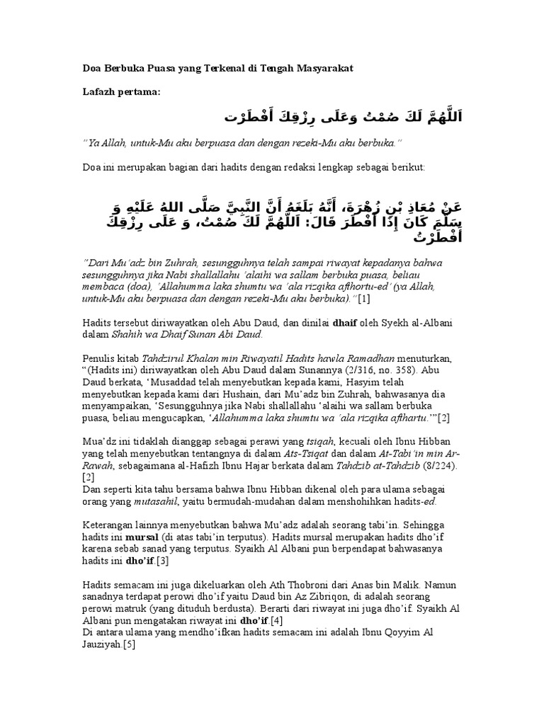 June 2 2018 june 2 2018 by admin94. Oleh karena itu doa ini tidak dibaca sebelum makan atau minum saat berbuka. 2358 secara mursal tidak ada perawi sahabat di atas tabiin dari muadz bin zuhrah.