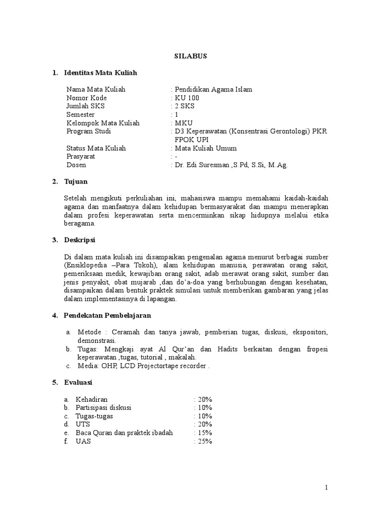 Silabus Agama Islam Keperawatan