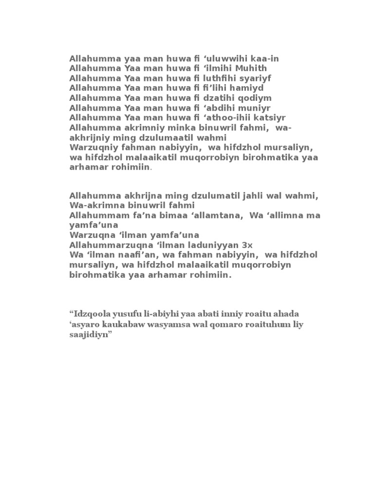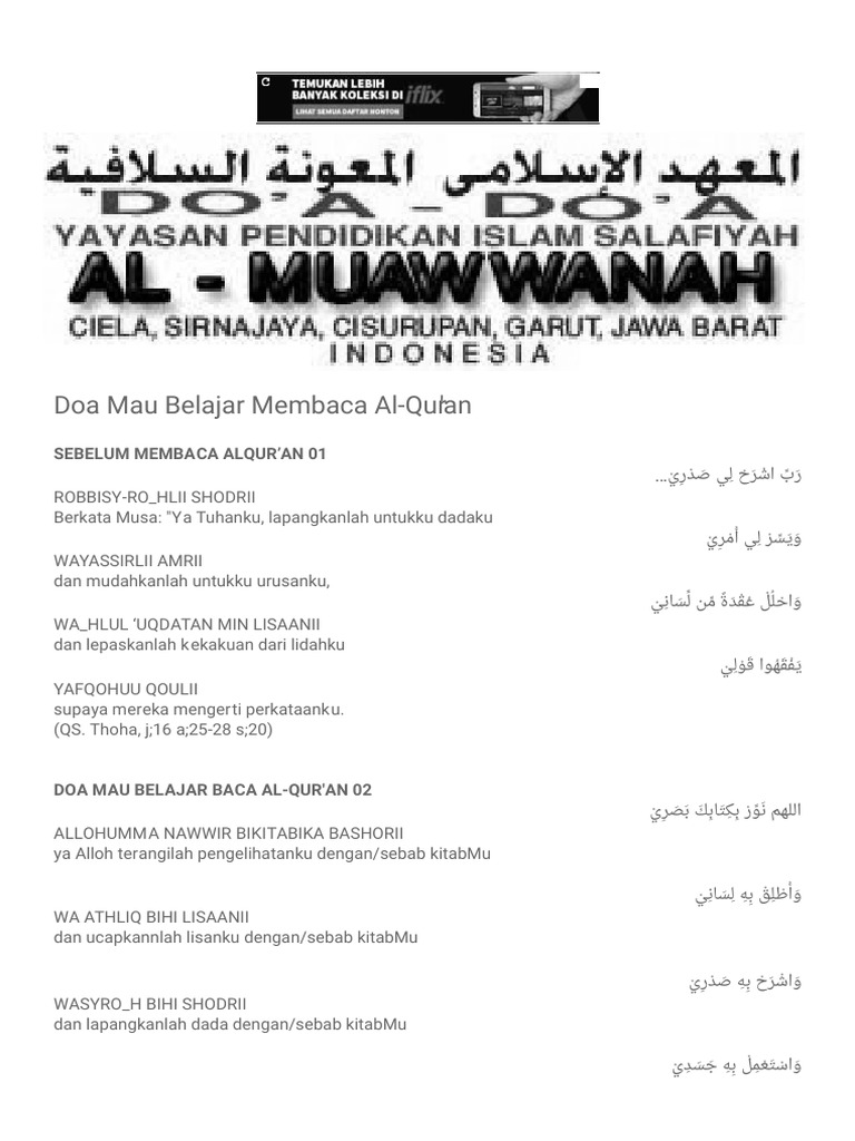 Tolong Tuliskan Ke Tulisan Latin Doa Sebelum Belajar Dan Doa