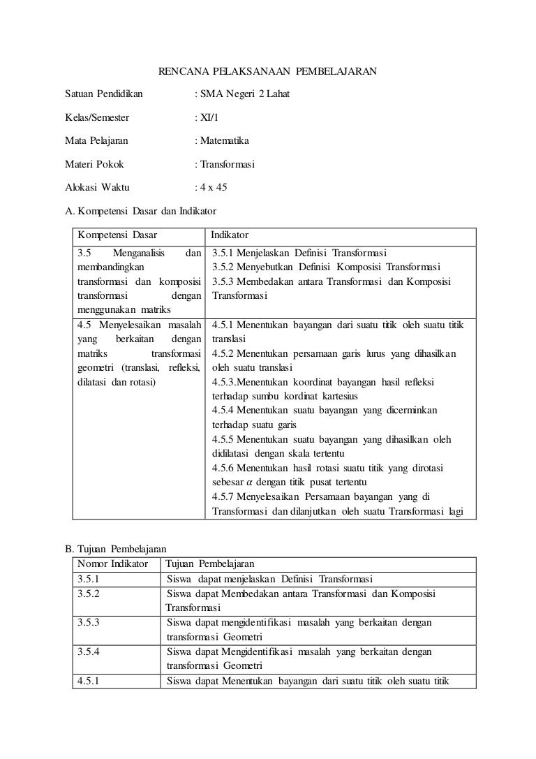Rencana Pelaksanaan Pembelajaran Transformasi