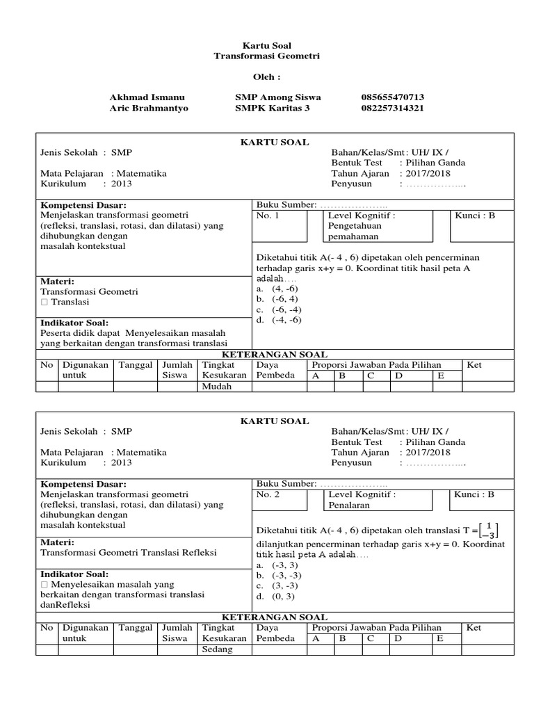 Contoh soal hots transformasi geometri. Berikut ini adalah kumpulan berkas file guru tentang soal hots transformasi geometri yang bisa anda unduh secara gratis dengan menekan tombol download. Berikut ini materi lengkap tentang transformasi geometri mulai dari konsep dasar translasi refleksi rotasi dilatasi matriks transformasi rumus lengkap hingga contoh soal dan pembahasan. Reflesi adalah transformasi yang memindahkan titik titik dengan menggunakan sifat bayangan oleh suatu cermin.