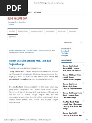 Pdf Bacaan Doa Tahlil Lengkap Arab Latin Dan Terjemahannya