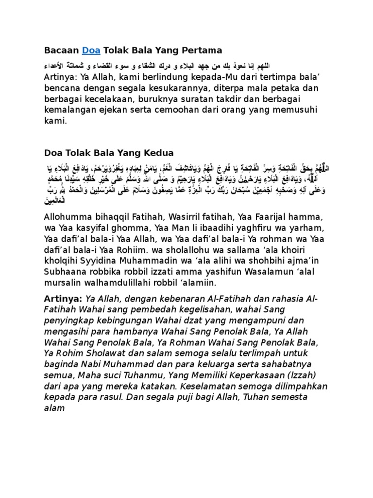 Doa Tolak Bala Dan Terjemahannya Ensiklopedia Online