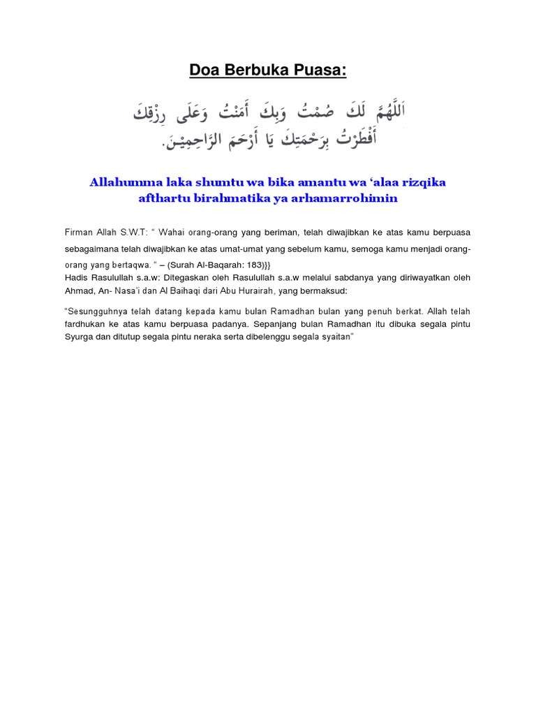 Berikut adalah cara bacaan doa dalam bahasa arab rumi dan maksudnya. Begitulah yang terjadi pada doa berbuka puasa. Umat islam menunaikan kewajiban bulan puasa.