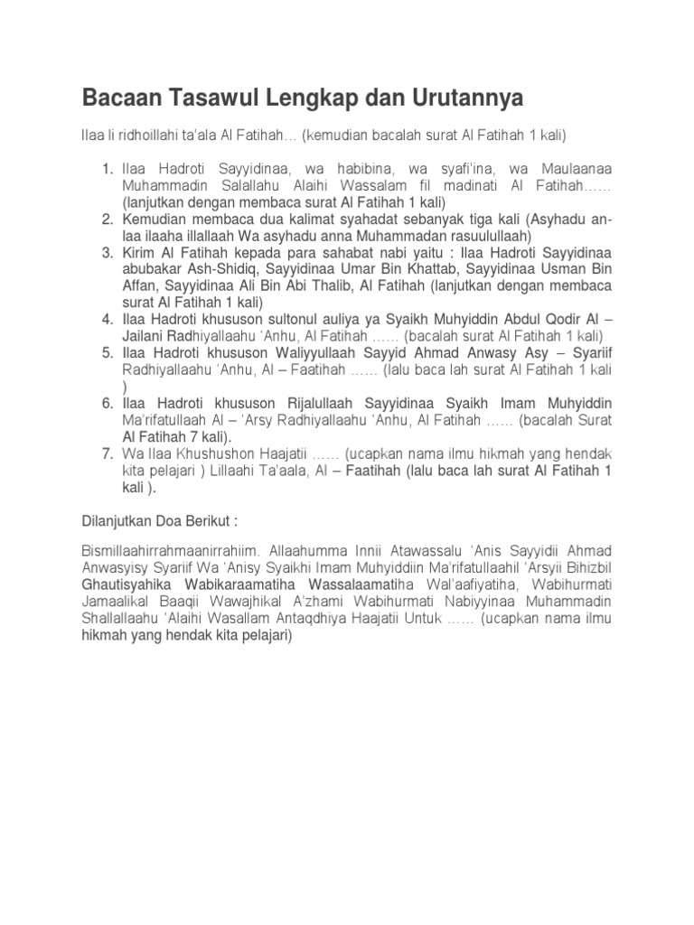 Bacaan Tasawul Lengkap Dan Urutannya Docx
